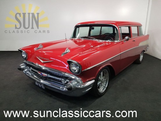 C'est un Chevrolet Bel Air Wagon de 1957. Il s’agit de la version spéciale estate version de 2 portes, ce qui rend cette voiture si spéciale, ainsi que du puissant moteur V8 de 6,5 litres, du tableau de bord numérique et des jantes chromées de 17 inches. La voiture est techniquement bien entretenue. La peinture de la voiture semble soignée avec l'usure. La Chevrolet Bel Air est immatriculée aux Pays-Bas.