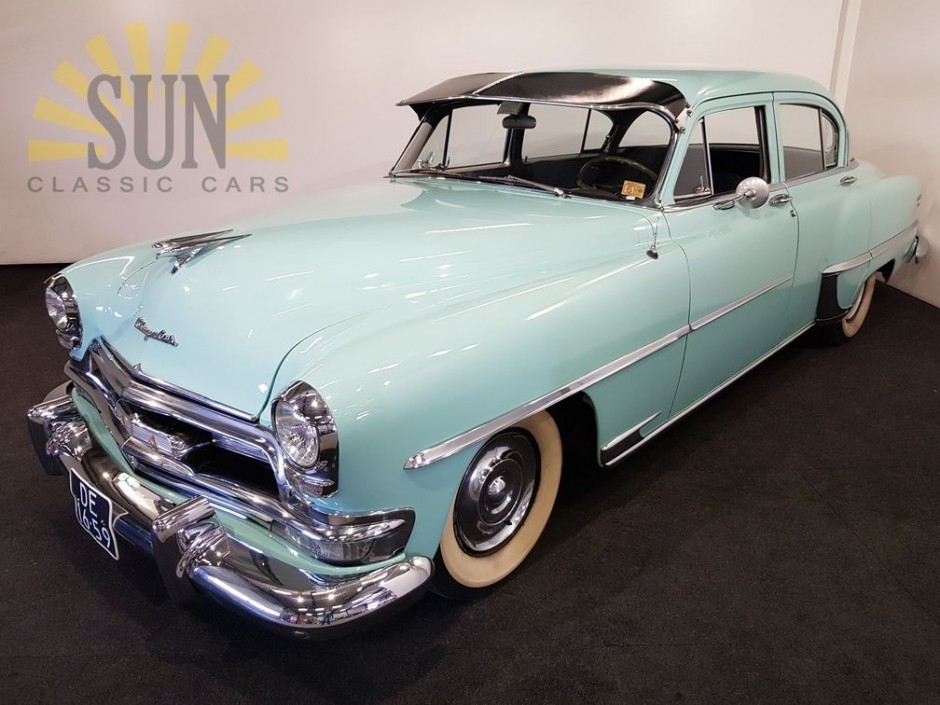Cette Chrysler Windsor de Luxe date de 1954. La voiture est en bon état avec des traces d'usure. La Chrysler est équipée d'un pare-soleil rare. Le moteur 6 en ligne est couplé à une boîte de vitesses automatique, ce qui rend la conduite très agréable. Une voiture merveilleuse avec laquelle rouler. La Chrysler a une plaque d'immatriculation néerlandaise.