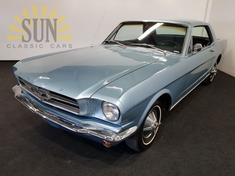 1965 Ford Mustang Coupe, nouvelle peinture en couleur de Mustang d’origine Tahoe Turquoise. Elle a moteur d’origine de 6 cyl avec boite automatique, interieur Pony noir en bon etat, belle chrome et des enjoliveurs d’origines avec pneus ‘white wall’. Cette Mustang a carte grise americaine, taxe d’importation est payé.
