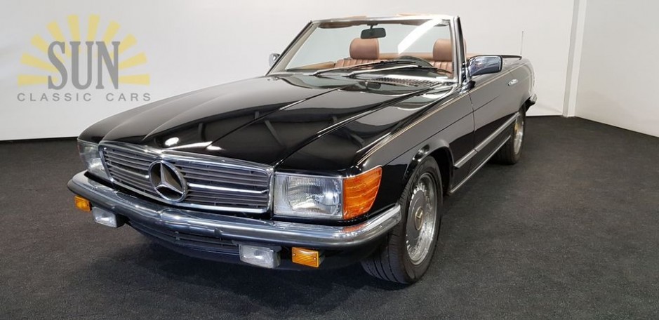 Mercedes-Benz 500 SL cabriolet de 1984. Cette Mercedes a combinaison tres chique de peinture noire avec interieur crème. La 500 SL a moteur de 4973 CC, V8. Belle voiture avec quelques traces d’usure. Cette Mercedes-Benz 500 SL a carte grise americaine, taxe d’importation est payé.