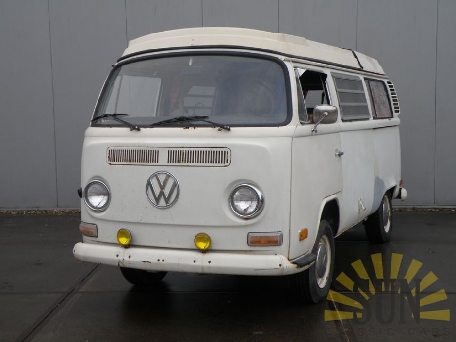 Cette VW T2 Camper est de 1972. C’est une projet de restauration. Voiture est complete. Elle roule, freine et change vitesses. Elle a moteur de 1700 CC, 4 cyl, 66 din cv. Une investissement interessante parce que les Campers augmentent a la valeur. Cette VW a carte grise americaine, taxe d’importation est payé.